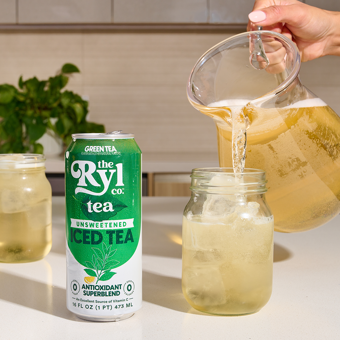 Savor the clean and invigorating taste of Ryl™ Unsweetened Green Iced Tea, where authentic flavor meets functional hydration in every sip.